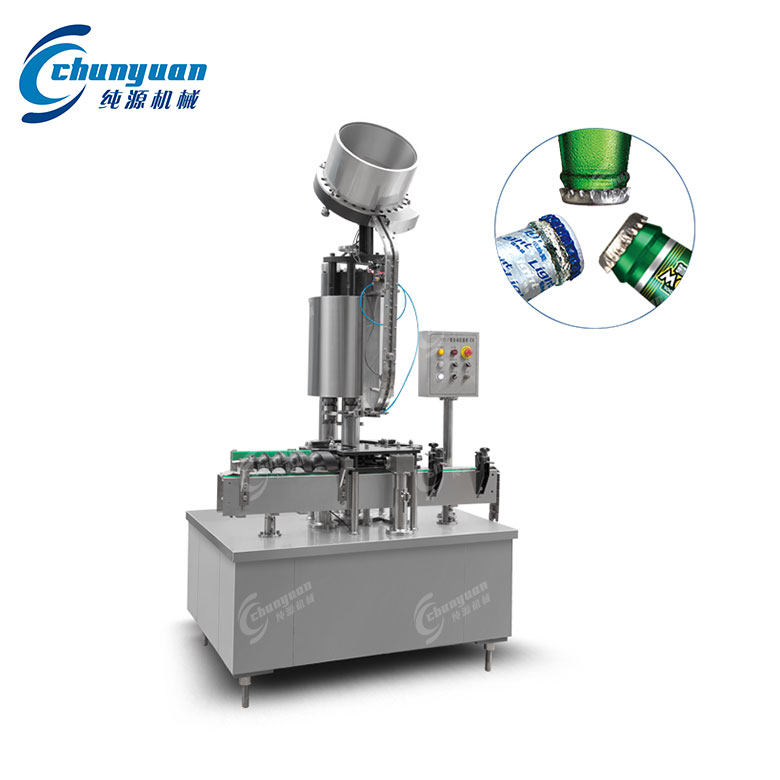 送蓋落蓋:皇冠蓋經(jīng)振動盤整理后,由導(dǎo)蓋管自動套入瓶口;